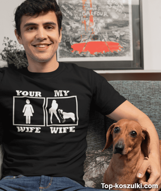 Śmieszna koszulka your wife my wife dog z hasłem „YOUR WIFE MY WIFE” to bezczelny, lekko prowokacyjny żart dla ludzi z dystansem. Jeden tekst, a klimat od razu robi się luźniejszy — i o to chodzi 😄