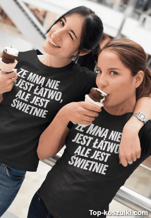 Śmieszna koszulka ze mną nie jest łatwo z hasłem „ZE MNĄ NIE JEST ŁATWO, ALE JEST ŚWIETNIE” to idealny sposób, żeby rozbroić napięcie humorem i pokazać dystans do siebie. Jedno zdanie i już wiadomo, kto tu rządzi nastrojem 😉