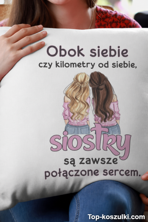 Szukasz czegoś, co rozbawi, a jednocześnie trafi prosto w serce? Ta śmieszna poduszka siostry prezent ma tekst: „Obok siebie czy kilometry od siebie, siostry są zawsze połączone sercem.” i robi dokładnie to, co powinna — wywołuje uśmiech i to przyjemne „ooo…”. ❤️