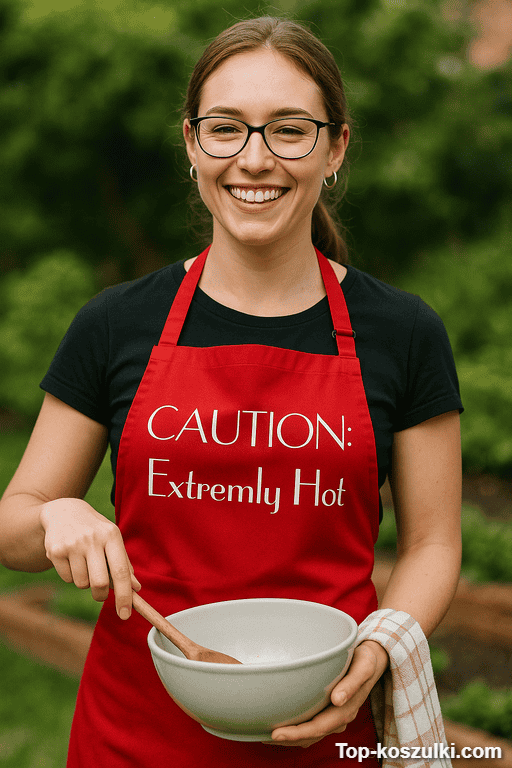 A jeśli chcesz czegoś z lekką zadziornością, ale bez przesady, śmieszny fartuch CAUTION: Extremly Hot trafia w punkt. Prosty przekaz, mocny żart, zero tłumaczenia — każdy łapie o co chodzi 😉