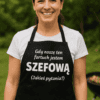 Szukasz czegoś, co od razu wywołuje śmiech i ustawia klimat w kuchni? Ten śmieszny fartuch prezent mówi wszystko za Ciebie: „Gdy noszę ten fartuch jestem SZEFEM (Jakieś pytania?)” – i nagle nawet krojenie cebuli smakuje jak władza 😎