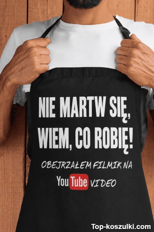 Śmieszny fartuch nie martw się robi robotę w sekundę: wchodzisz do kuchni, a napis „NIE MARTW SIĘ, WIEM, CO ROBIĘ! OBEJRZAŁEM FILMIK NA YouTube” rozbraja każde napięcie. Idealny, gdy ktoś już chce „pomagać”, zanim w ogóle włączysz palnik 😉